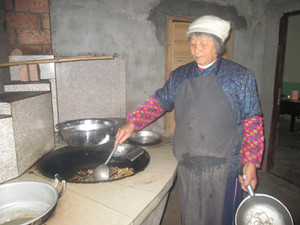 这时,奶奶又说:"菜在锅里得让它均匀受热,不要翻得过快,锅底的温度高,让菜在锅底多活动活动,这样熟得快些。"原来炒菜有这么多的学问啊!我不好意思地向奶奶吐吐了舌头。