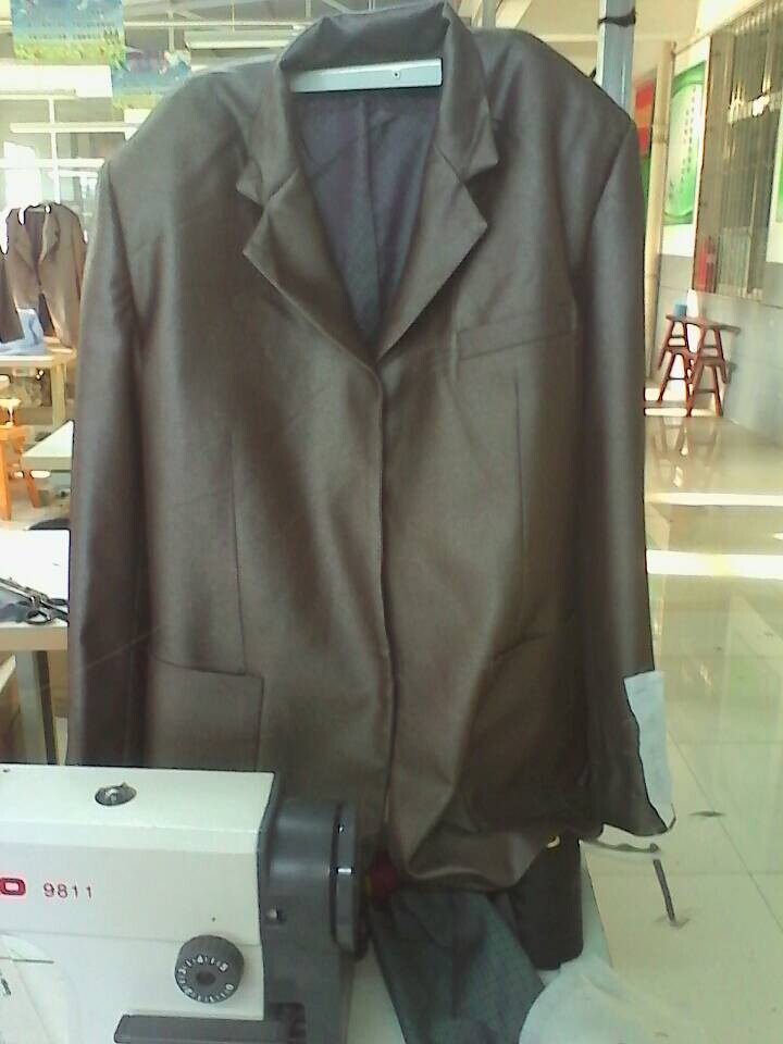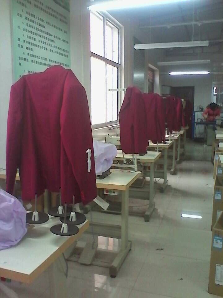我们的实训室比起一般的教室要大的多,这里面摆着成排成排的成品衣服,有西裤、有西装,老师和我们看着这些衣服都很高兴,因为这是我们共同创造的的成果,每个同学都做衣服尽心尽力,将自己最好的水平展示到了这件衣服上。