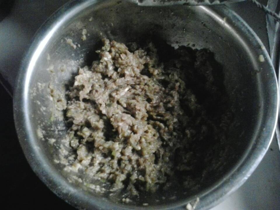 饺子是我喜欢吃的食物,我站在妈妈身后目不转睛地观察着她准备饺子馅,只见妈妈洗净葱、韭菜切碎做好菜馅,然后把肉馅和菜馅一齐搅拌成了荤素搭配的混合馅。