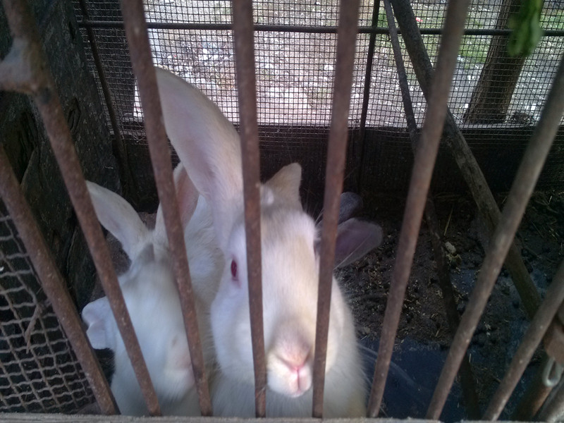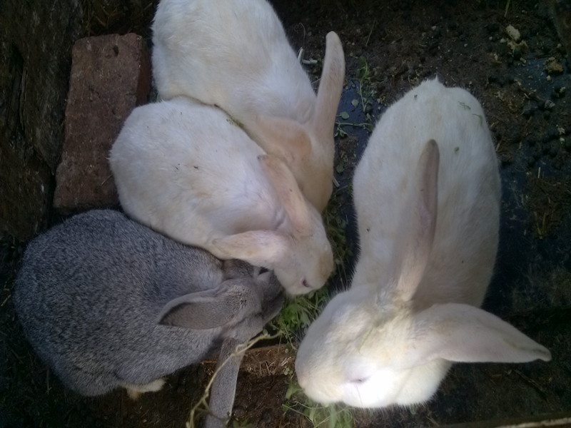 看!这里就有一群饥饿的小兔子,他们是三只小白兔,和一只小灰兔。虽然他们住在一起,可他们并不是一伙的,他们也会"那帮结派",三只小白兔是最早一起养的,所以他们的感情更好些,小灰兔是"后进生",自然被其他三只白兔"不待见"(就是不欢迎的意思)。每次"用餐"时,都是三只白兔抢在前面,把小灰兔挤在最边上,待他们吃饱喝足了,小灰兔才能吃到食物,可怜的小灰兔!
