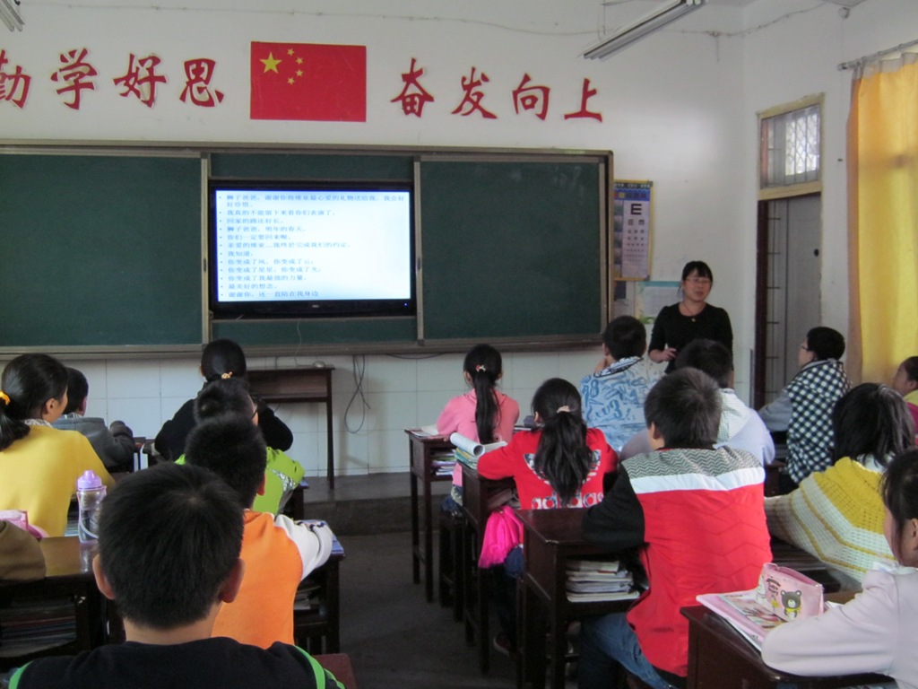 哦,我们的班主任在五班进行公开课呢!呵呵,平时严厉的她,也挺可爱的嘛!学生们是多么的认真呀!我相信他们一定表现得不错。