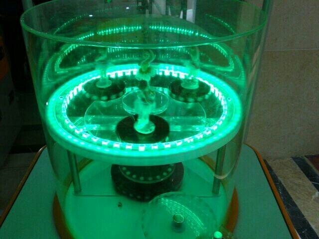 科技展览室内的科技作品,琳琅满目,千奇百怪,如:"激光琴"、"全自动家具"、"哈哈镜"、"自我提升"、"磁力圆盘"······最令我难忘的是"电磁场",这个作品整体摆放在一个小桌子上,桌子中间有两个小格子,里面有一些曲别针和一个像印章一样的东西,桌子上有一个转轮。它的操作很简单,只要用力转动手轮,那个像印章的东西就能吸住这些曲别针。真有那么神奇吗?我怀着好奇的心情试了一下,真的吸住了,可当我停止转动手轮,又吸不住了。这是为什么呢?这让我百思不得其解,后来看了简介才知道,原来当我操作发电机时,便会产生电流,电流通过线圈成为电磁铁,于是便能吸引那些含铁的物质。当我停止转动,线圈没有电流通过便失去了磁性,不能吸住一些像曲别针之类的东西啦。