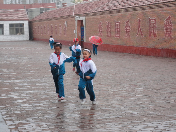 我跑出家门,渴望自由的心飞了出来。瞬间感觉了雨点。我轻松地笑了笑,这没什么,我撒开腿跑了起来,好舒服!凉风习习,吹走了夏日的炎热。跑累了,停下来,看着腿上的水花,轻放自如地笑了,好快乐!好开心!站在屋檐下欣赏雨丝的舞蹈,走出屋檐,望着满天乌云,雨点滴在脸上,并没有察觉。我扳着指头数"深蓝、墨兰、浅蓝、淡蓝……"我为这个了不起的发现高兴,乌云不是黑色的,它是蓝色的。