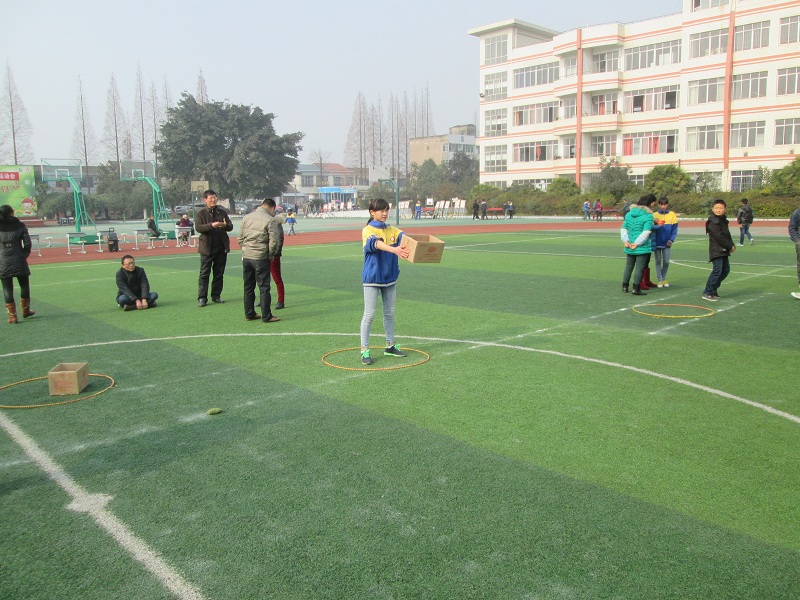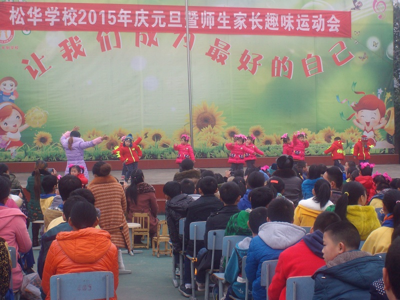 在各班展示结束之后,进行了一场呼啦圈个人赛,凡是愿意的都可以参加,学生、老师、家长,一个个走到场地中央,甩起了呼啦圈,由于呼啦圈有点轻,不好控制,很快就有人陆续退场了,到主持人宣布结束的时候,场上就剩下10个人了,最后这10个人获得了特别的奖励。 吃过午饭,各项趣味比赛就开始了,颗粒归仓、兔子跳、多足虫竞走、乒乓球接力,老师、家长、学生齐上阵,一项比一项精彩。 这是2014年最后一天的趣味运动会,也是我们在松华学校参加的最后一届运动会了,我们将带着这份怀念走向崭新的2015年。