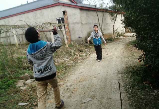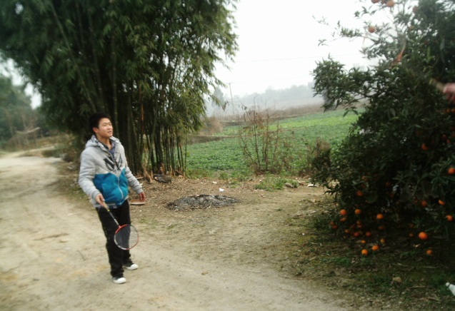 又回家了,今天是周六,现在已经入冬了,天气越来越冷了,有些时候早上还有霜,几个星期来,太阳也是偶尔露露脸。 下午我写完了作业,正无聊,刚好我弟弟来找我玩,他说:"我们打羽毛球好不好?"我正愁怎么耍,说:"好!"