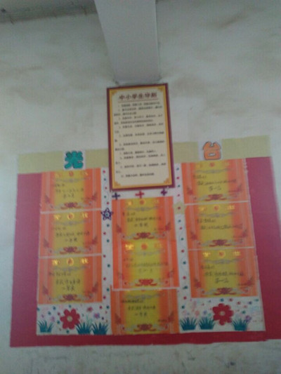 先说"光荣台"吧。光荣台上贴满了许多的奖状,有朗诵比赛的、写字比赛的、有运动会的等等。有个人的,也有集体的。那一张张奖状代表了我们的班级荣誉,同时也呈现了我们这个班集体团结、友爱。