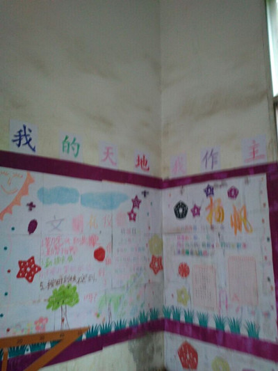 现在来到了"我的天地"。也是我们自由畅享的天地,这里有同学们亲手布置的,有同学们的手工作品、剪纸作品、书法作品等。每一处都凝聚着同学们的心血。