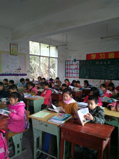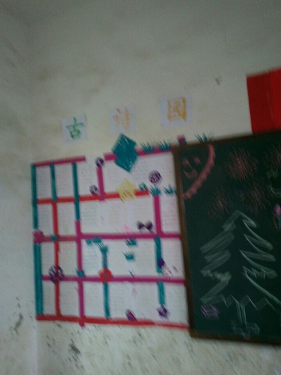 接下来是"古诗园"。我们学校的特色是古诗文诵读,因此同学们将自己平时积累的古诗贴在里面,以供课余时细细品读。
