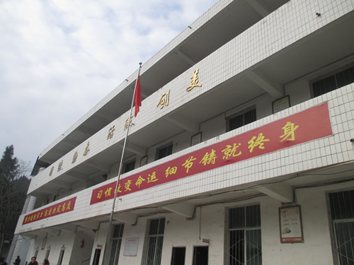 走进老木小学的内操场,首先是映入眼帘的挺立在右边的教学楼,它共有三层,前面有一个不大的舞台,立着一根旗杆。