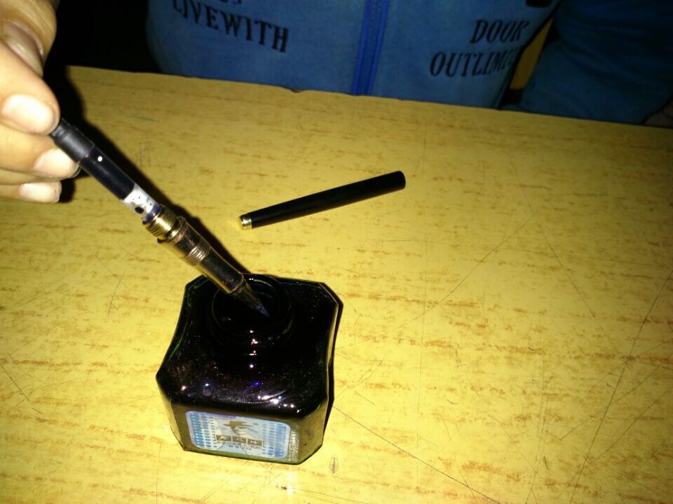 过了一会儿,主人回来了,拿起钢笔,准备写东西,结果没有墨水了,主人打开墨水瓶盖,抓起钢笔,就把它放进了墨水瓶中吸墨水,钢笔拼命挣扎,想从墨水瓶里挣扎出来,边挣扎边说:"我要出来!我要证明我可以不靠你写字!"