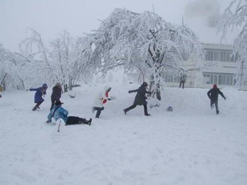 一场大雪之后,整个世界一片洁白,犹如粉妆玉砌一般。那千峰万岭,看着看着好像真的奔跑了起来,真有"山舞银蛇,原驰蜡象"的意味呀!这时,最开心的要数孩子们了,他们一个个跑到雪地里堆雪人、打雪仗,好不开心啊!尽管小手儿冻得红罗卜似的,但玩耍的兴致却全然不减。太阳出来后,红日白雪交相辉映,新中国江山更加妖娆!