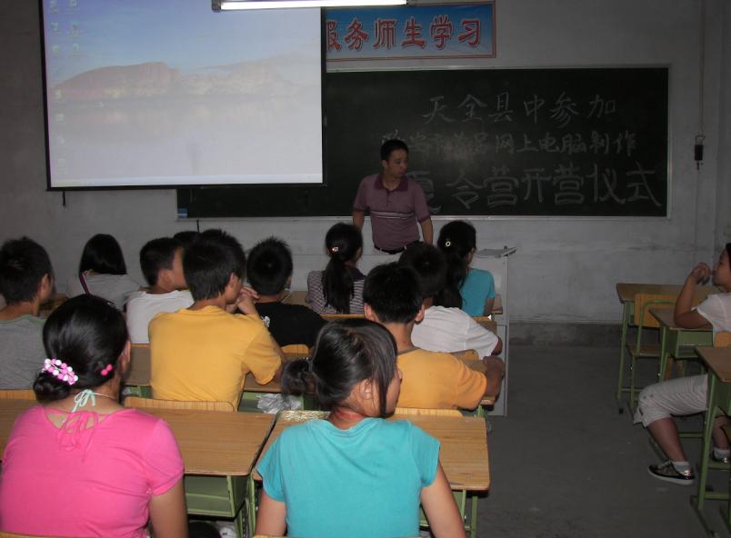 不过,在六月底我接到了高丽芳老师的电话,她告诉我在县中将要开展"雅安市首届电脑制作夏令营"活动,问我要不要参加。我听了非常的兴奋,终于有活动可以参加了,整天不用一个人在家无聊了。我一口就答应下来,这次夏令营是免费学习电脑的活动,这么有意义的活动,我像谁都会毫不犹豫的报名参加。