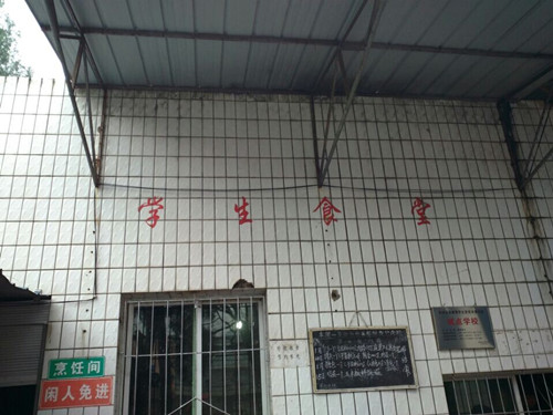 食堂做饭的屋子上写着"学生食堂"四个大字,下面挂着一面小黑板,写着我们每餐吃什么,在小黑板的下面写着"烹饪间,闲人免进"。