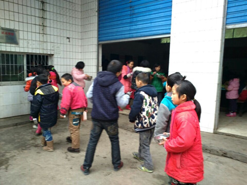赶到食堂后,同学们马上整整齐齐排起了队,队伍一直排到了办公到门口,像一条安静的长龙。