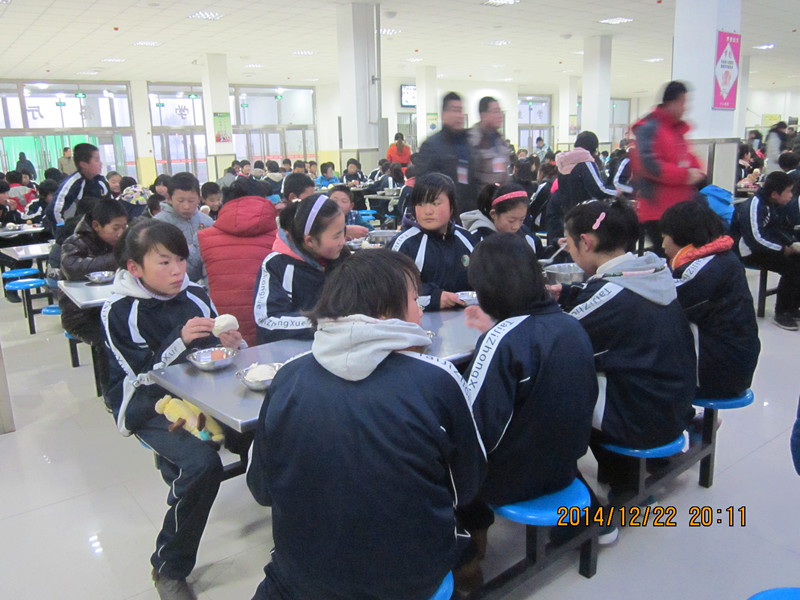 早操结束后同学们便有序地进入食堂用餐,之后一天紧张的学习生活便开始了。四节课很快就结束了,接下来就到了午餐时间,同学们还是如此有序地排队到食堂,丝毫没有拥挤。食堂经常有3种饭,1号窗口是炒拉条,2号是臊子面,3,4,5是米饭。可以说是丰富多彩。饥肠辘辘的我们总是会狼吞虎咽的就把一大碗饭就消灭干净。