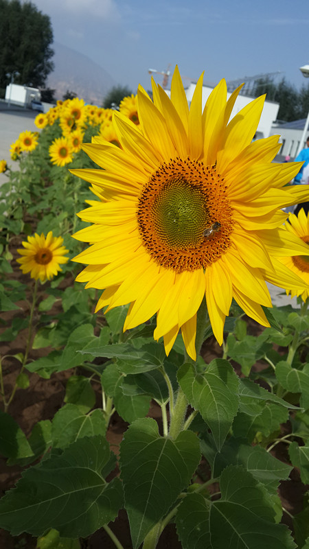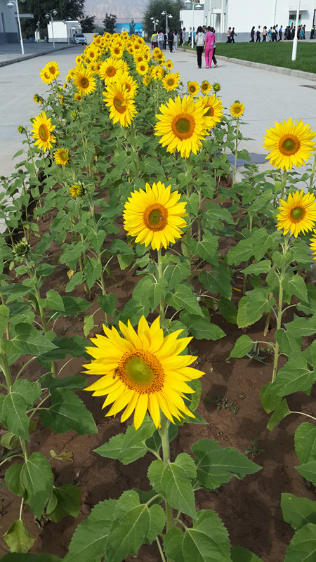 "晋陶渊明独爱菊。自李唐来,世人甚爱牡丹。"而我喜爱向日葵,尤其是我们教学楼前花园中的那一片。