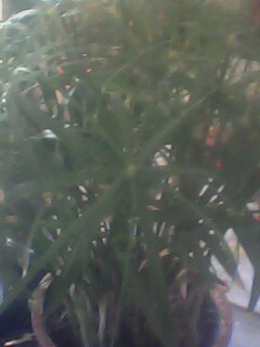 它的叶子是又细又长的,并且从叶根到叶尖全都是绿的。不过,它是非常爱水的,如果三天三夜不给它浇水,它就会叶尖慢慢地一点点地干到根部。不过,看到叶尖干枯了,你就赶紧给它浇水,它便就恢复绿意的了。可是,它在外边是度不过严寒的冬天的,冬天来临时,你必须把它搬进自家的屋子里,以防它受冻。