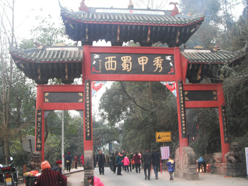 在我的家乡有着一个传统的习俗——那就是在大年初一这天,到飞仙阁去烧香祈福。 初一这天一大早,去往飞仙阁的路上就已是行人如织。从飞仙阁景区大门牌坊"西蜀甲秀"往里走,路边的香火小摊上满是祈福用的香烛纸钱,小贩们也正起劲的吆喝。