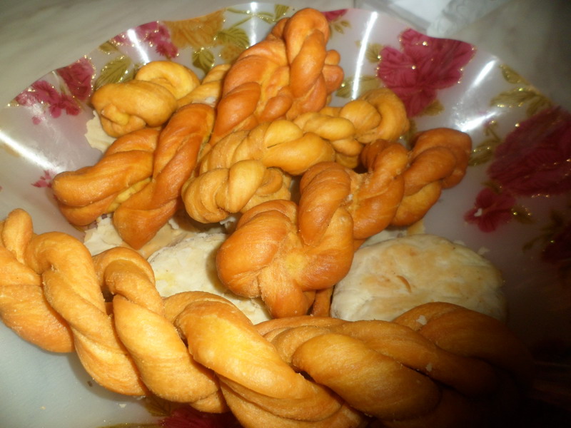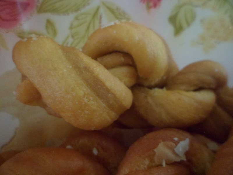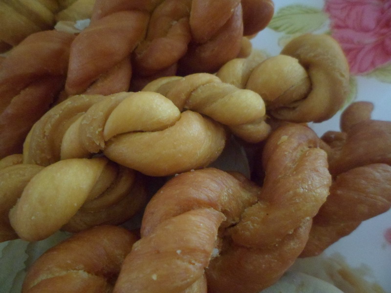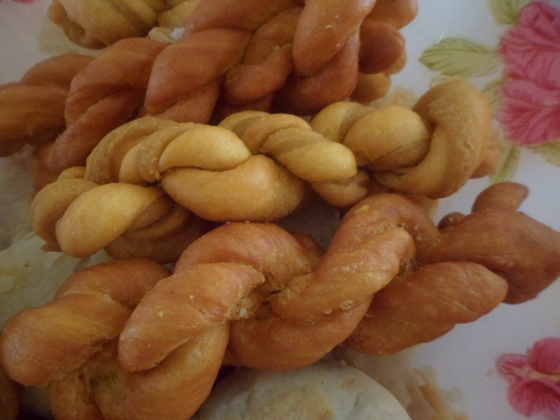 首先,和面,先倒许多面粉,然后加入适量的糖水,是适量的糖水,太多会稀,太少会硬。等和到一定的程度就加入猪油,可别惊讶,这样的面做成的麻花可香呢。说到和面,这可真是个技术活呢,我取来一些面团,照着姥姥的样子揉着,看姥姥揉得那么悠然自得,而我却弄得手忙脚乱,但我很快就调整好了姿态,耐心地揉面,终于,这硬邦邦的面团在我手中变得柔软起来,但远不如姥姥揉得好。好了,我们可以准备最有趣的一个环节——拧麻花了。