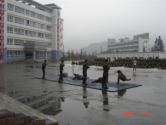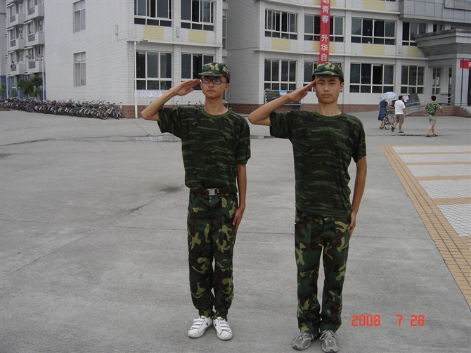 每年初中刚毕业后,新生都要到高中军训一星期。今年是特别的一年!"5·12"地震后,初三的学长、学姐们仍然保持着良好的状态,以优异的成绩光荣毕业了!