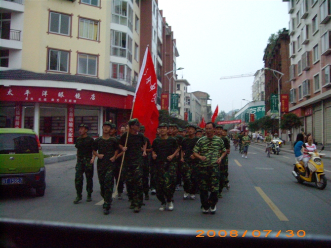 每天,他们都要很早就起床。集合!整装待发,一起晨练。每天早晨、下午都要跑步,大概要围着天全城跑一圈吧!