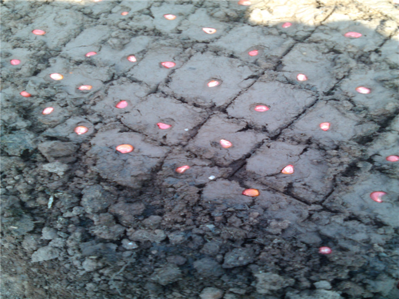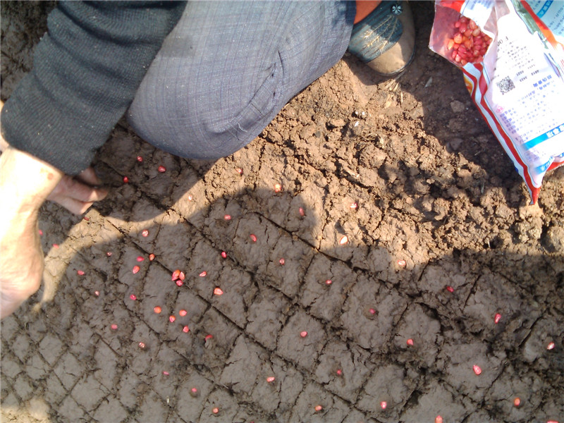 按玉米种子也是一门技术活,稍有一步没做好,就会影响日后玉米的成长。接下来就由我向大家介绍一下按玉米种子是怎么回事吧! 首先,要先把土地上的杂物全都清除掉,还要用锄头把土地翻一下(要翻均匀),再用粪水把专用的一处浇湿,最好是浇成长方形的(方便后序工作),浇好之后的长方形还要晒几天,因为太稀了的话就不好画格子。其实以上工序奶奶早在几天前都准备好了。