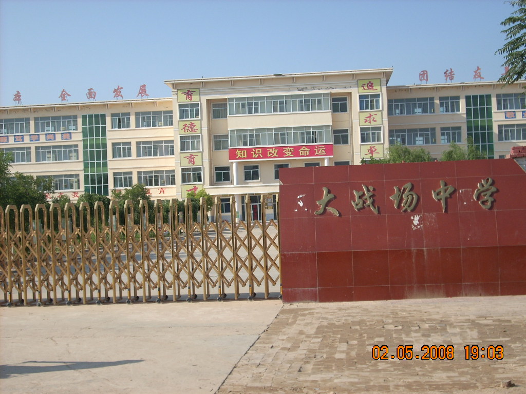 曾经培育过我的母校 大战场中学始建于1986年,系固原县移民吊庄学校,2000年移交中宁县管辖。学校坐落于大战场乡街道中心西北约300米,学校现有学生3000人,其中回族约有1700人,现有45个教室班,其中等职业班2个。近年来,随着党的民族政策的进一步落实,在各级党委和政府的关怀和大力支持下,少数民族适龄儿童入学率稳步上升,民族教育事业前景喜人。