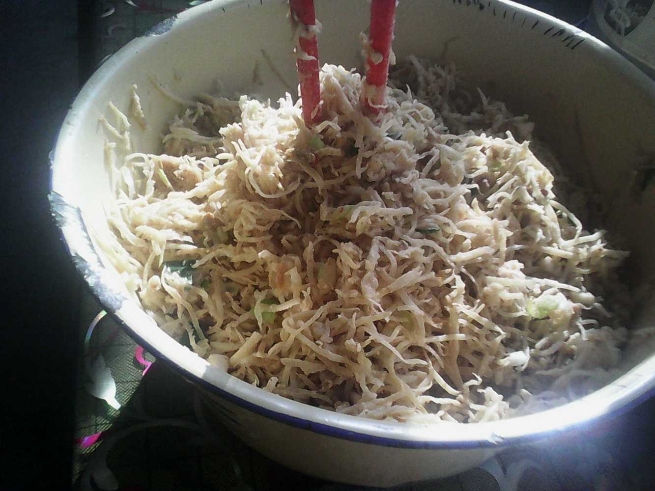 一天下午,我们开工了。爷爷两天以前就已经劈了一大堆柴火。奶奶上午就做好了馅,有萝卜馅,红糖馅,肉馅......,闻一闻就让人流口水。