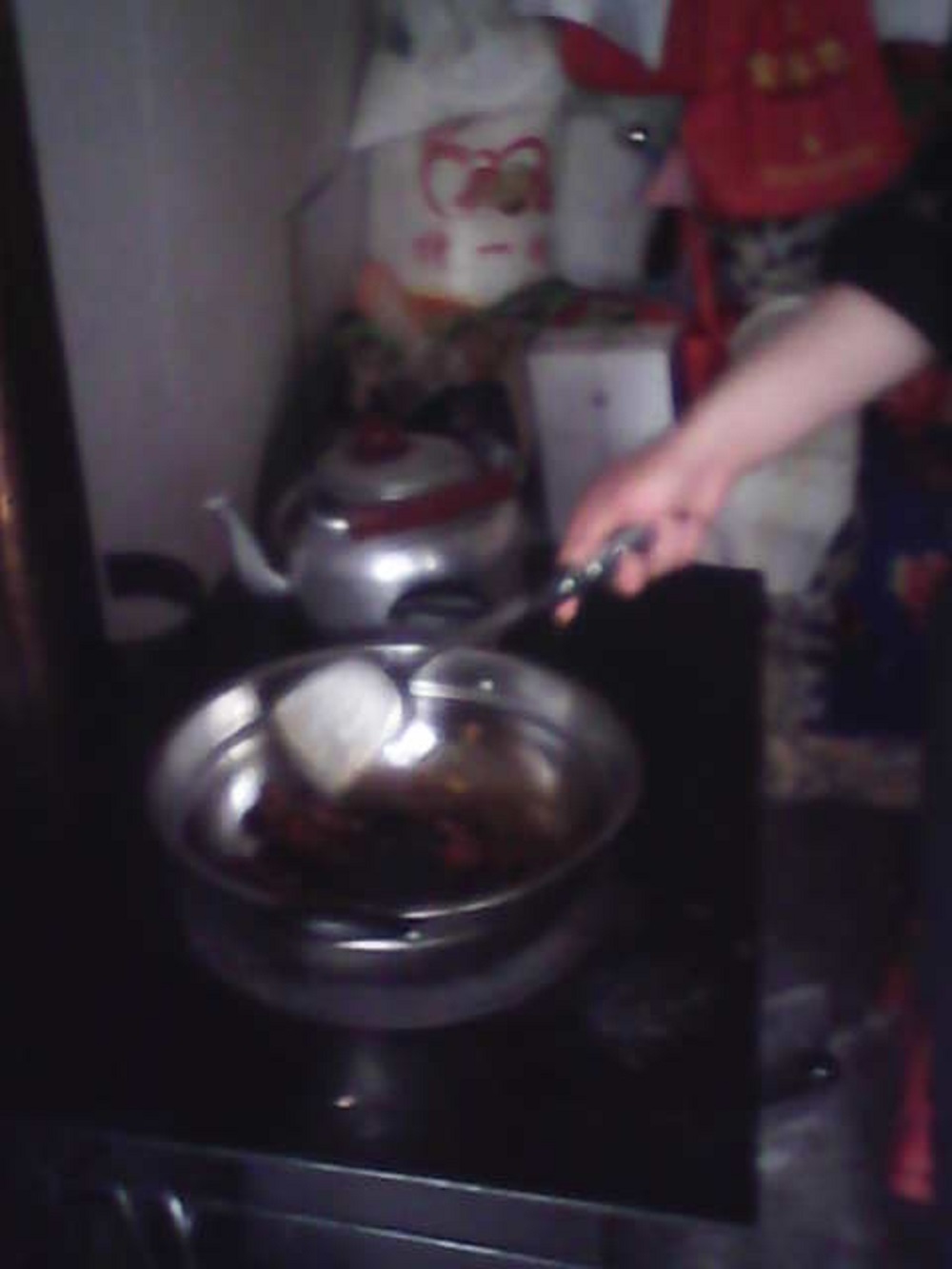 最后一步,就是下面了。爸爸下的面有的宽,有的厚,还有的薄,非常的不一致。不知道什么原因,面下到锅里,就成了浆糊似得,捞都捞不出来,爸爸看看自己第一次做饭就失败了,就只好带我去外面吃了。