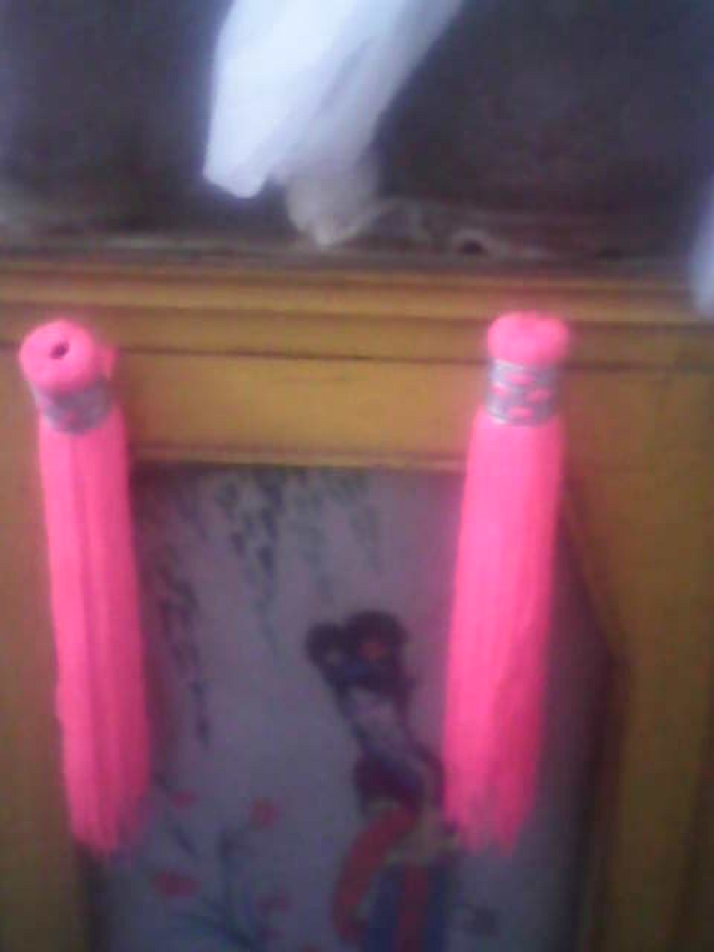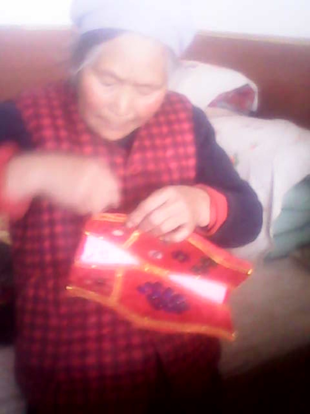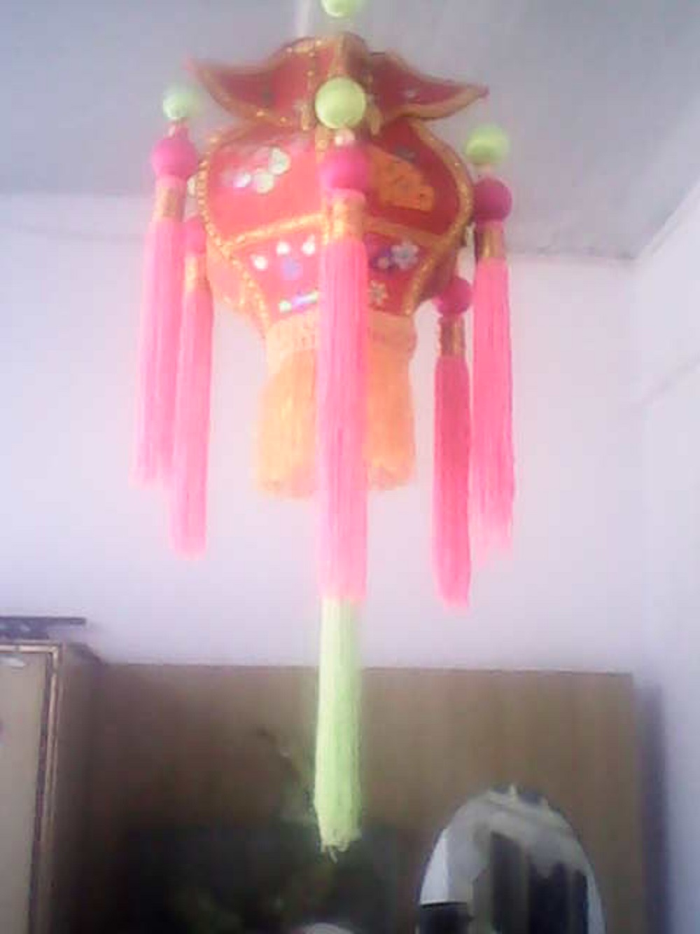 她拿出好几个大球,我不知道她要干什么,只见她把钱穿进这几个球中,用手把它做成了一个一个的小穗,然后她用线把金线缝在了边上,之后我就离开了外婆家。