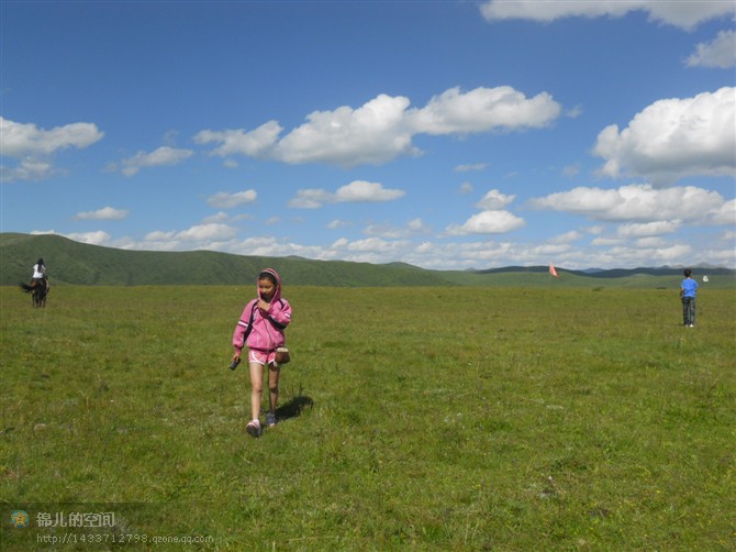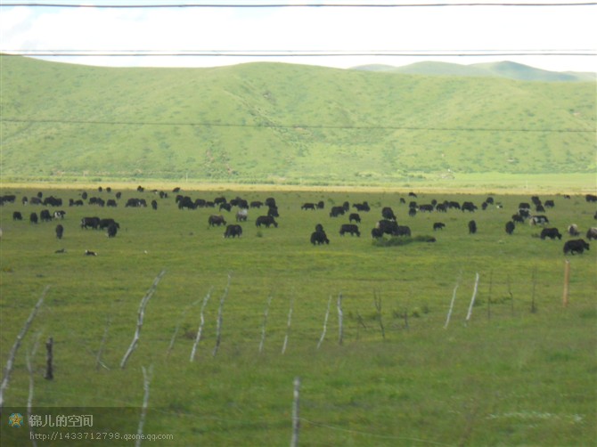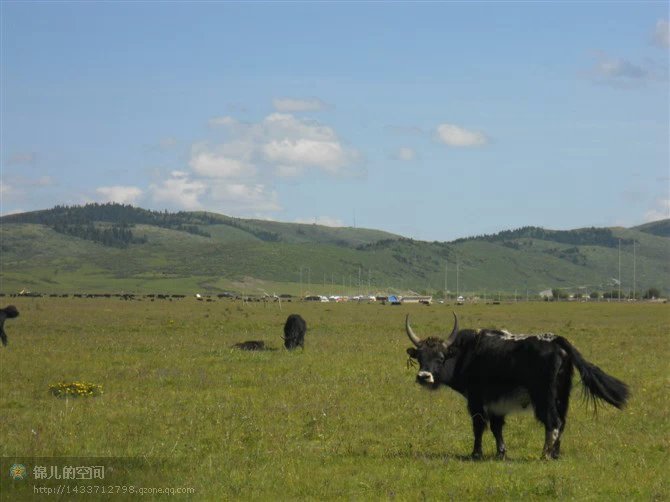 大约一个半钟头的样子,我们远远就看见草原了。 下车时,导游还不忘叮嘱我们,小心踩到"地雷",否则就不许上车。我疑惑的问姐姐什么"地雷"啊,姐姐居然还故作神秘地对我说:"不告诉你!"这让我一下子摸不着头脑了。姐姐一见我这样,忍不住笑了,她告诉我,"地雷"就是那些牦牛的粪便,我一听,也和姐姐一起哈哈大笑起来。