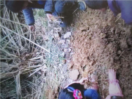 然后,我和姐姐,妈妈,表哥,幺幺就把泥土中的折耳根选出来,拔净上面的泥土,放进口袋中。