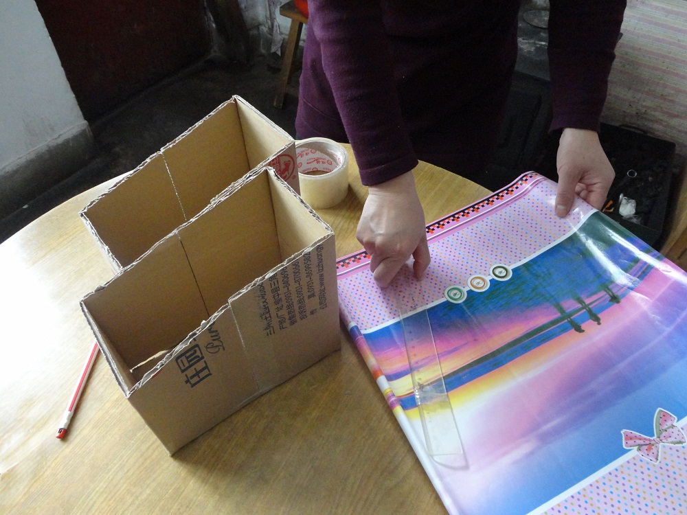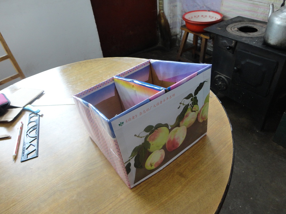 如果你缺一个收纳盒,不必花钱去买。用废牛奶箱做一个很实用,瞧我做的这个盒子很漂亮吧。做法很简单,废鲜奶箱子按比例一分为二,高边和高边对齐,矮边和矮边对齐,粘在一起,外面糊一层自己喜欢的包装纸就成了。这样的收纳盒适合装书之类的,方便找书。当然,可以根据需要选择箱子的大小和粘贴的方式,如三联式的、横排式的。这个属于竖排式的。