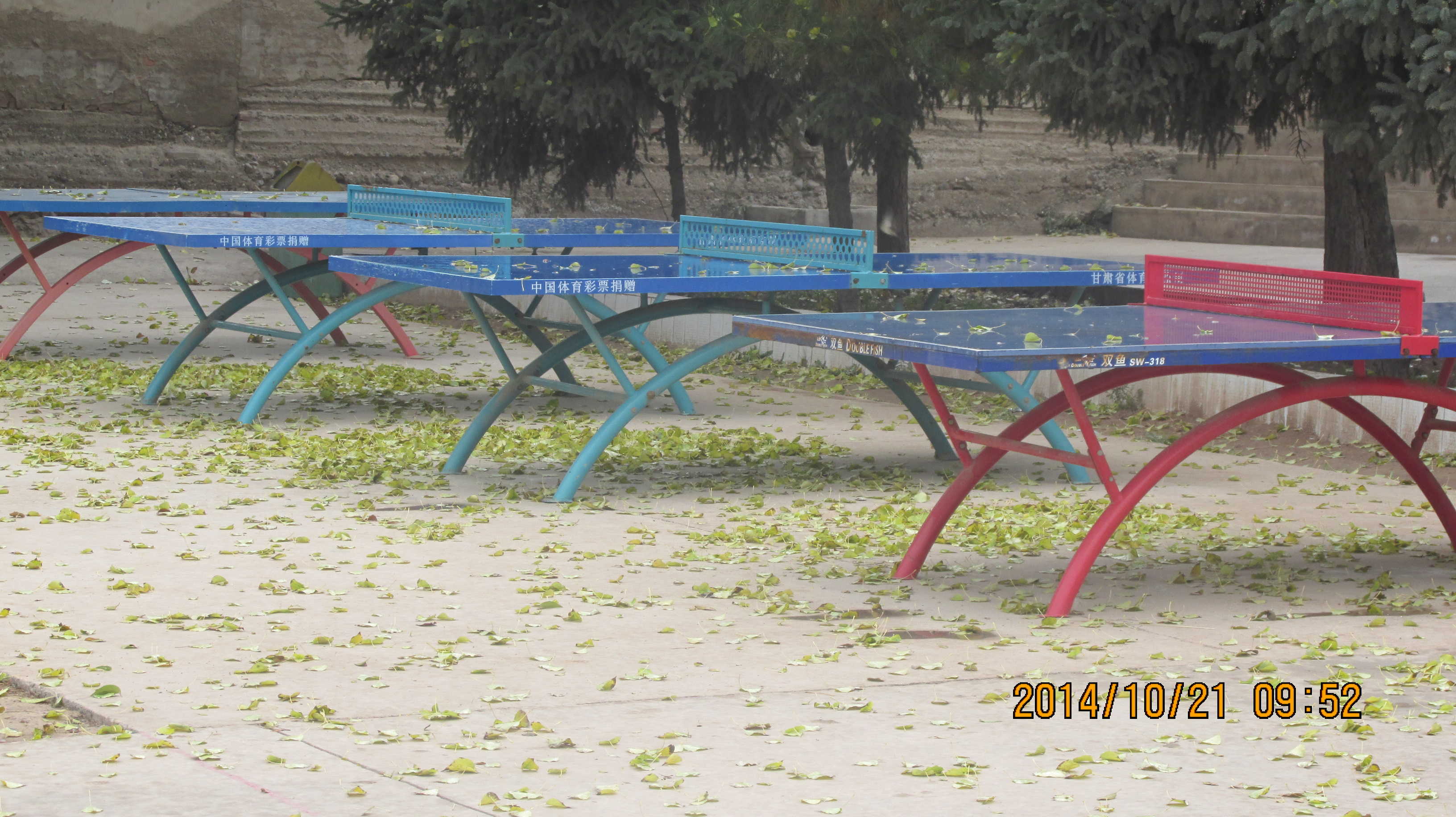 乒乓球台子的四周落满了被秋风吹落的树叶,一阵秋风吹来让人感到了丝丝的寒意,站在操场里看教学楼显得格外的高。