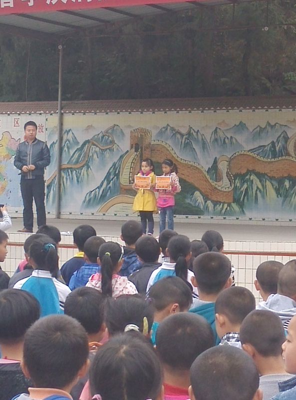 学校在集会上表扬了上周一周来的各种好人好事 ,重点表扬了这俩个小学二年级的小朋友,特发奖状以资鼓励,号召全校学生向她们学习。