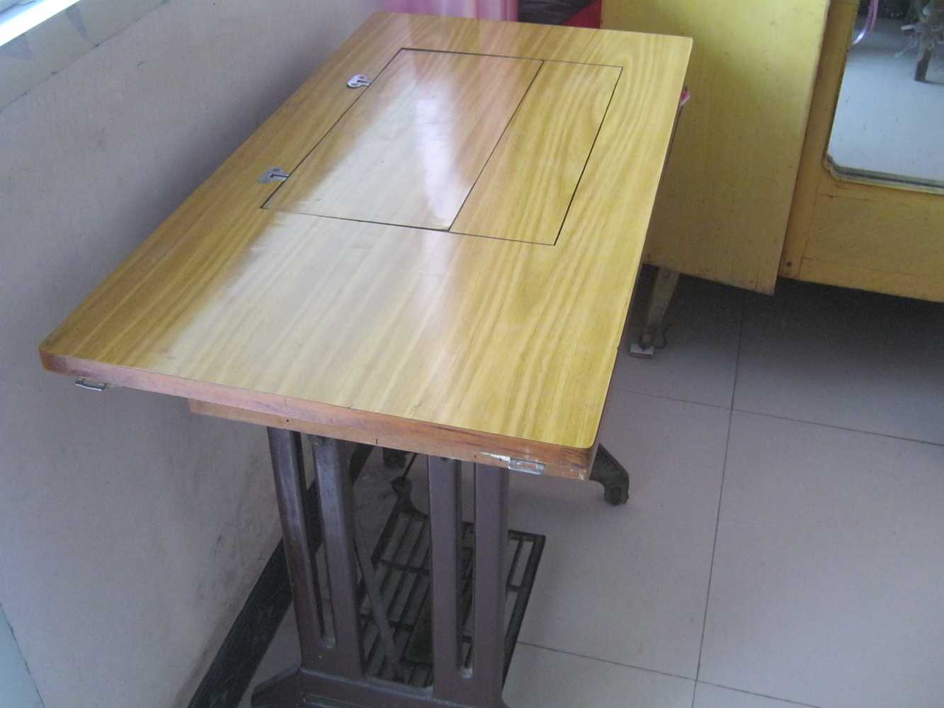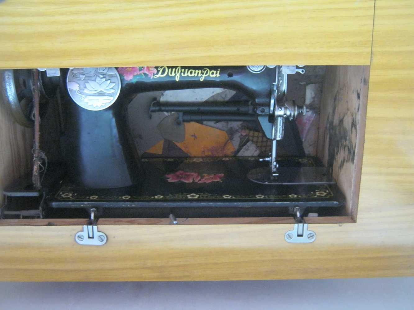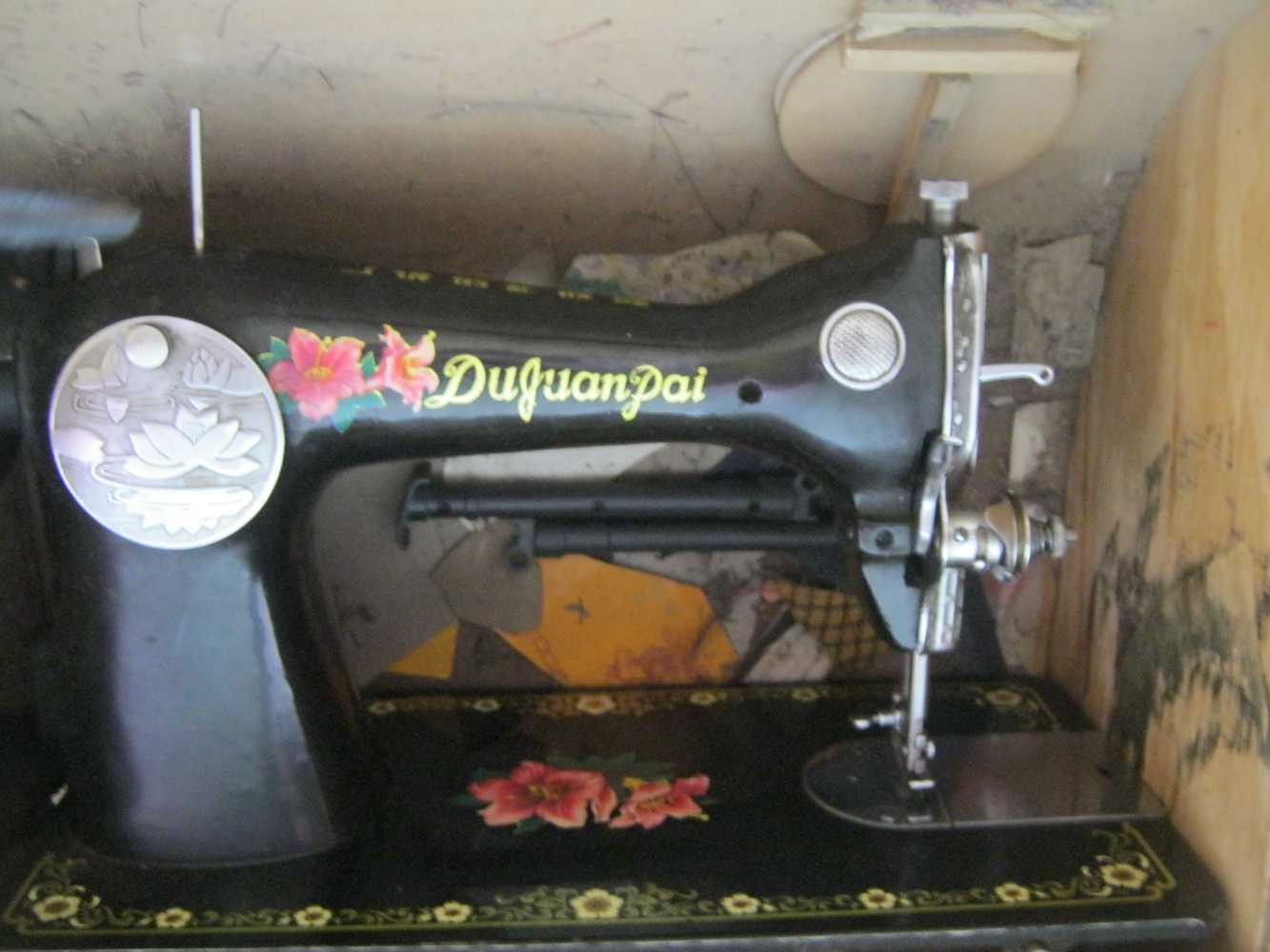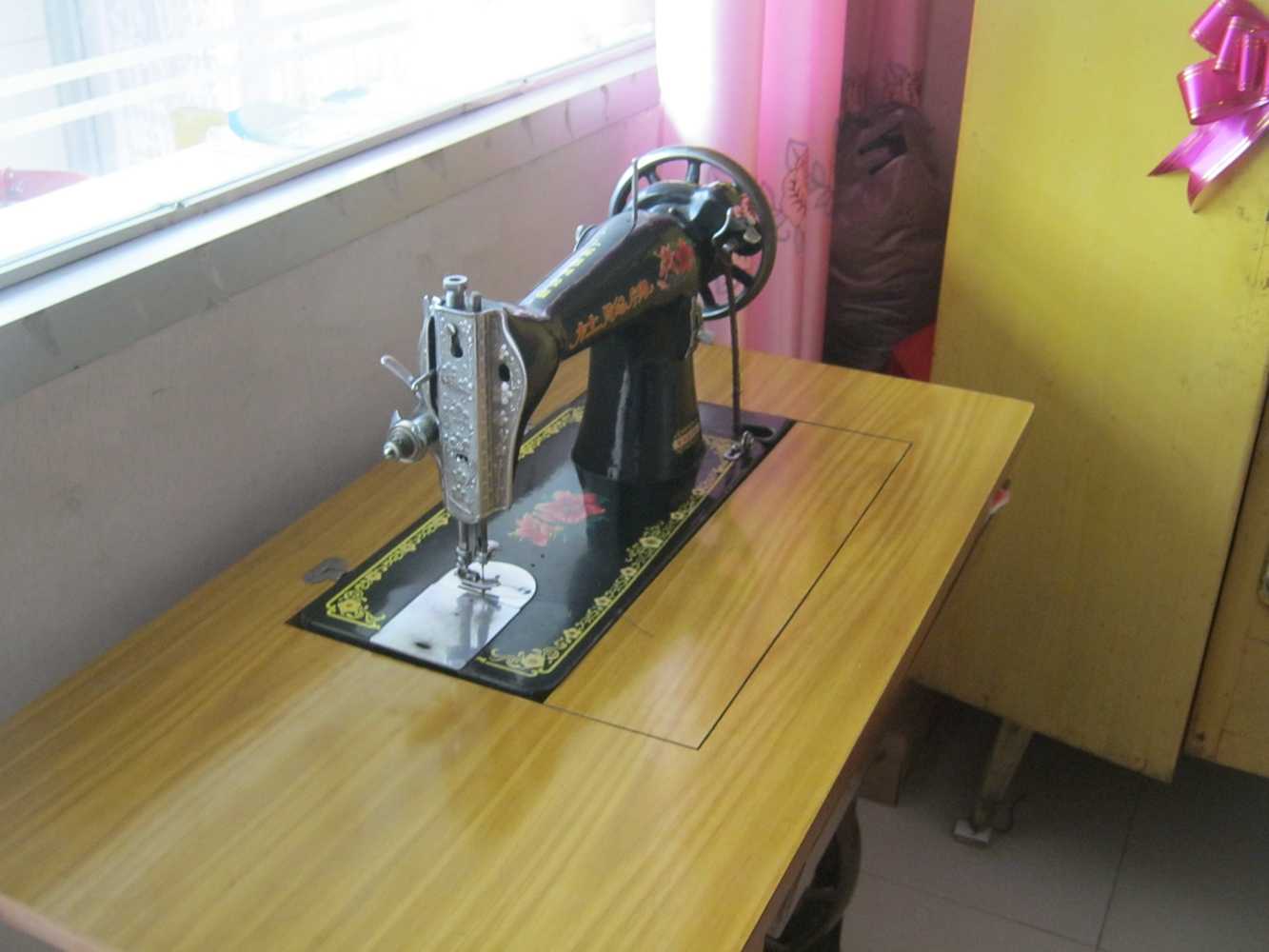 这台机器是妈妈陪嫁的家具,到现在为止已经有三十多年的历史了。岁月在它的身上留下了一道道"皱纹",但是它竟如此奇迹般的"活"到了现在。