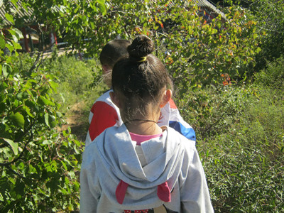 "瞧,它在那儿",表妹说。我顺着表妹手指的方向看去,蚂蚱果然在那么。我又跑过去一扣,嘿,又跑了。我环视着草丛,啊,它竟然躲在我的鞋底下。我轻轻蹲下来,两手在离蚂蚱大约10厘米高的位置,猛地向下一扣,"抓住了抓住了!"我高兴极了,表妹也围着我转。