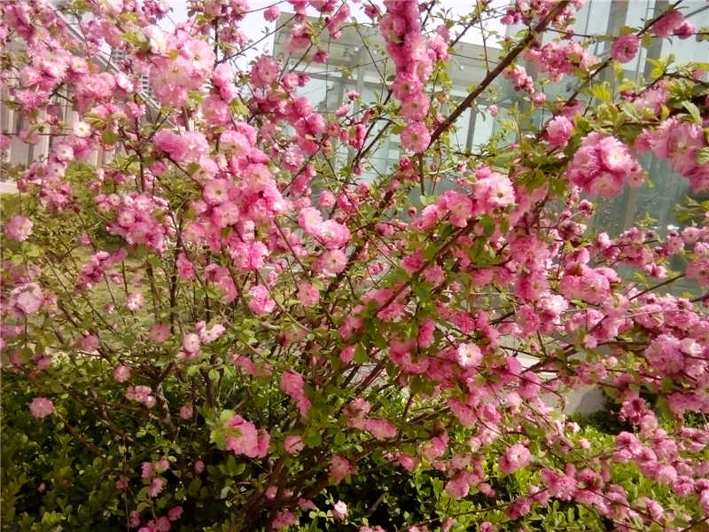 粉色的花朵,挂满枝头,似桃花又不似桃花。花瓣一朵朵,一束束,争奇斗艳,似谁也不相让。 这种花在医院里、校园里、街道两旁到处可见,给小镇带来了一片春意盎然的景象,最受小镇人们的喜爱。 粉丢丢的花瓣宛如少女羞红的脸,享受着路人对她的赞美!