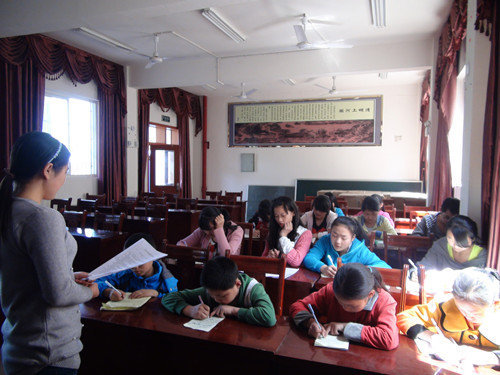 我们文学社的同学较之其它组的人数要少些。因此,我们和书法组的同学在一块儿学习。指导老师给我们讲解一个个知识要点,替我们修改着一句句文笔错误。耳畔间还隐约听见硬笔书法组老师细致的笔画讲解。但后来由于他们怕打扰到我们,就换了学习场地。