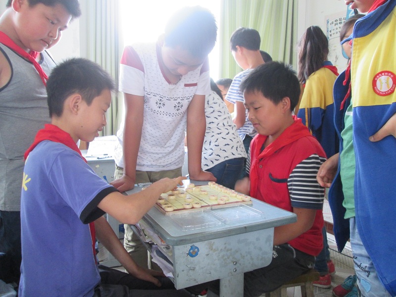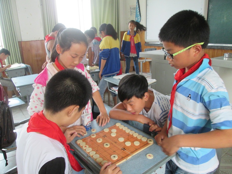 起初,我只是作为一个旁观者来看我们班那些"高手"下,有时候知道走什么,知道"吃"什么,但更多的时候不知道他们走棋的意图,于是我问他们:"为什么要走这步而不走那步?"他们也耐心地给我讲,我自己也琢磨。 渐渐地,我知道每走一步都要为下一步作考虑,既要进攻,又要防守。 再后来,我不再做观众,而是叫人和我一起下棋,也敢和"高手"过招了,现在,我在班上也算是一个"高手"了。