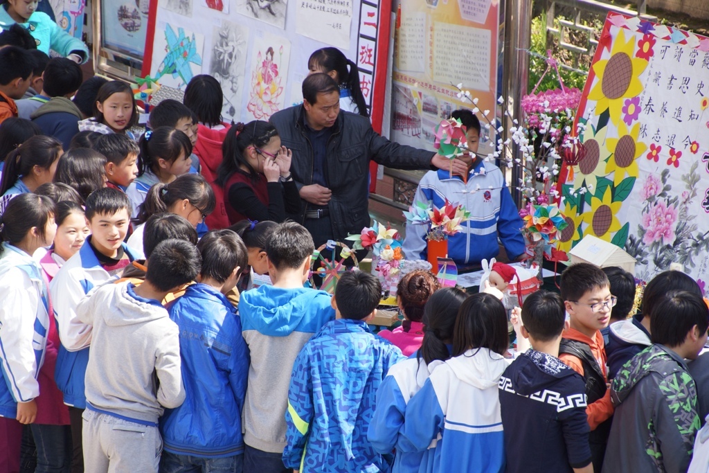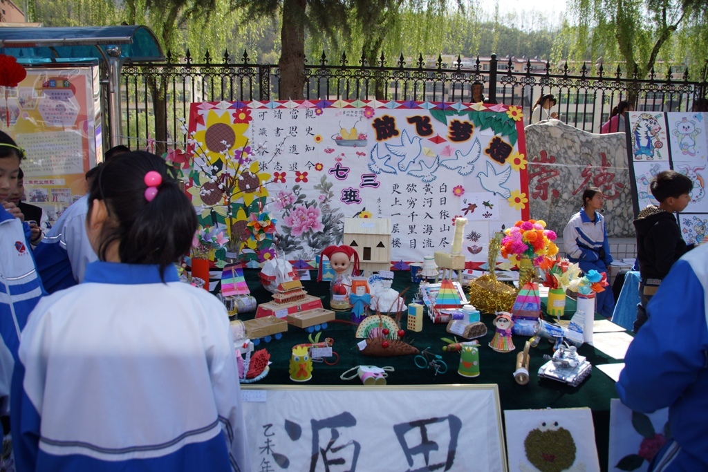 哇哦,摆了这么多玩意儿,在干嘛呢?呵呵,这是我们艺术节的展览会呢!大家多么开心呀!