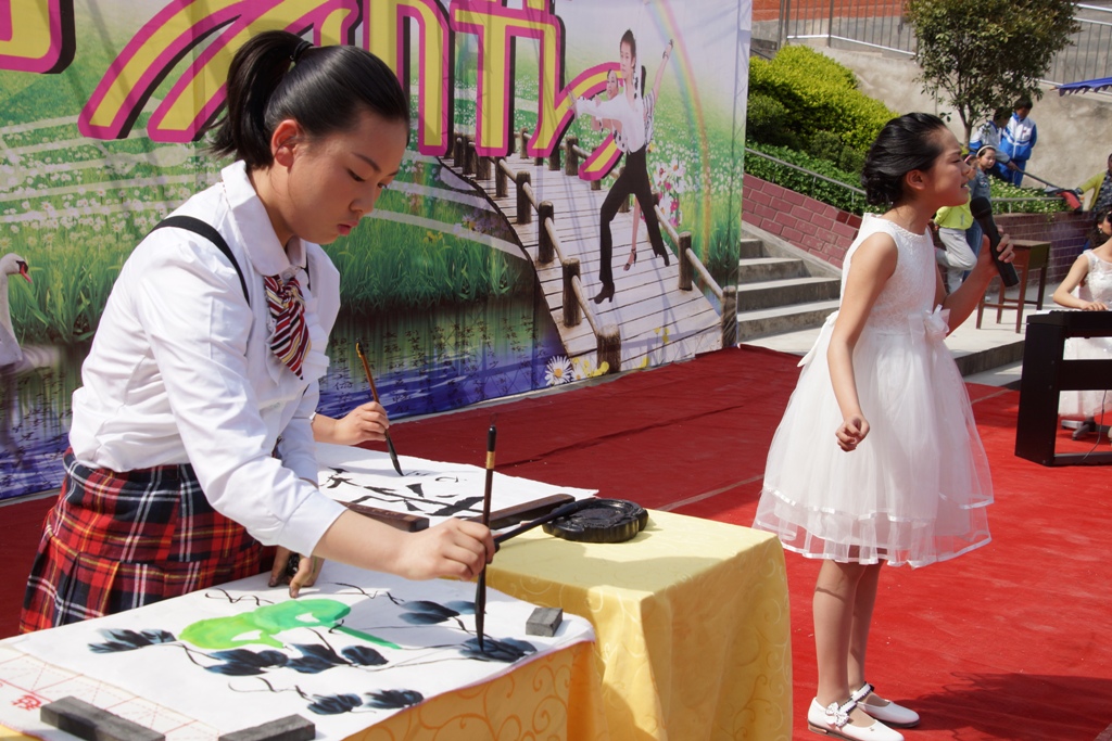 哇哦,摆了这么多玩意儿,在干嘛呢?呵呵,这是我们艺术节的展览会呢!大家多磨开心呀!