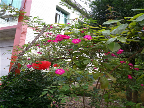 月季花千姿百态,有的是含苞欲放的花骨朵儿,有的没有完全绽放,像鲜艳的小喇叭;有的已经完全盛开,一层层的花瓣包围着淡黄的花蕊,幽香四散。月季花随着春风摇摆,像是和风儿玩耍,又像是在跳舞,它们多快乐啊!