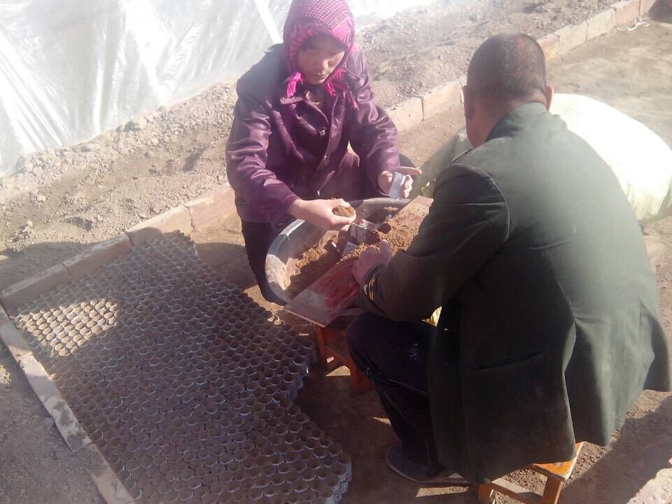 农民们要先卷好纸罐罐,并把它们剪成同样长,再拉些肥沃土,选择一块长3米,宽2米的空地,然后,菜农们就坐在哪里装罐罐了,装完后开始放水,水还不能太多,等放的水稍干后开始播种,最后用些细土覆盖,最后用塑料搭棚保温让它在适益的温度下生根发芽。