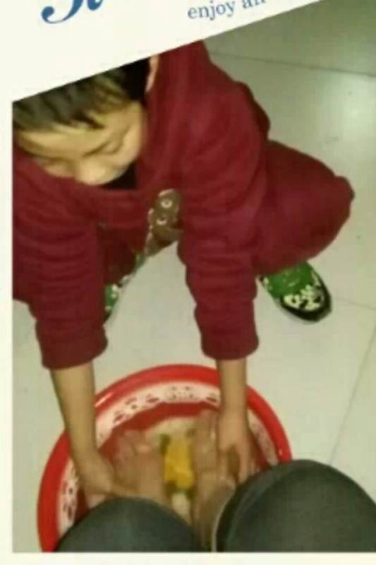 放学后,妈妈说:"今天妈妈一定会把你的脚洗的干干净净的。"我说:"不!今天老师布置的作业是给家长洗脚"。回到家后,我就开始做准备工作。