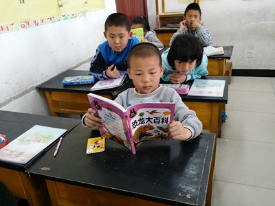 星期一,刚上完第一节课,王明就从书桌里拿出一本书,津津有味地看起来,他喜欢的书很多,《潘宮的秘密》、《奥数》、《笑猫日记》》、《恐龙大百科》……他看完一页又一页。朋友叫他出去玩,他说:"看完这一页。"后来,他看完这一页他又看了一页,直到上课为止。