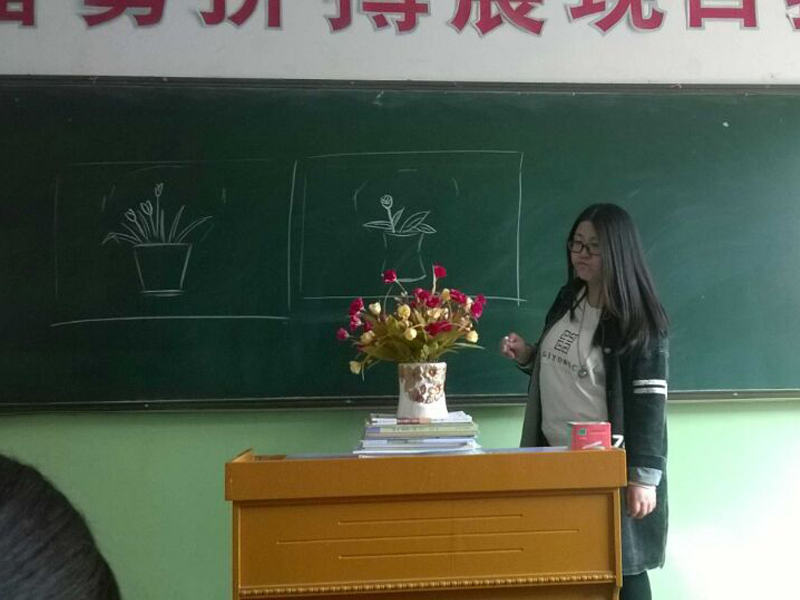 同学们越画越有信心,看着美术老师甜美的笑容,我们便更想画的漂漂亮亮的,让画出来的花和老师的笑容一样甜,让画出来的花跟真的一样。同学们一边谈论自己的画,一边又改正着自己画的不足之处,大家细细的勾画花的细节,花杆、花叶,一笔笔的勾画出花的整个轮廓,老师都夸我们学的快。