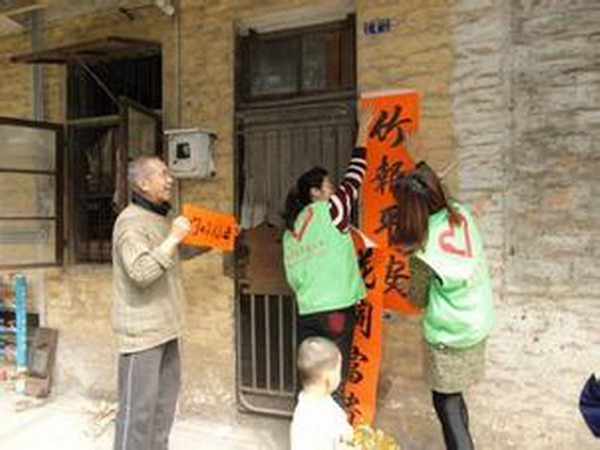 灯笼挂完后,我无聊极了!突然,我想起一副对联:一干二净除旧习,五讲四美树新风。对了,我可以扫地呀!于是,我拿起扫帚,快速地扫起地来。扫完后,亲戚也来了,他们都夸我勤快,我的心里像吃了蜜一样甜!