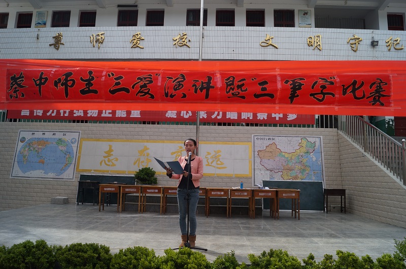 首先进行的是教师"三爱"演讲比赛,所谓"三爱",即爱学习,爱劳动,爱新中国,老师们那声情并茂的演讲,拨动着我们的心弦,让我们更深层次的理解了"三爱"的含义,一场轰轰烈烈的"三爱"演讲比赛就在同学们热烈的掌声中落下了帷幕。