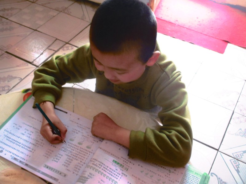 我的弟弟写作业的时候非常认真。小手紧紧地抓着铅笔,在一本巨大的数学习题册上一笔一划的写着。不过,他只对老师布置的作业认真,一旦妈妈让他写作业,就闹起脾气来,和妈妈百般争论,最后只能一边抹眼泪一边不情不愿的写作业。叫他改正错误也是非常难的,非得大吵一架才肯就范。 我的弟弟对课外书十分痴迷。每天我一放学回家便一个劲缠着我要课外书。看到课外书便两眼放光,开心的捧到一边去读。读的时候十分入神,连妈妈叫他吃饭都听不到。